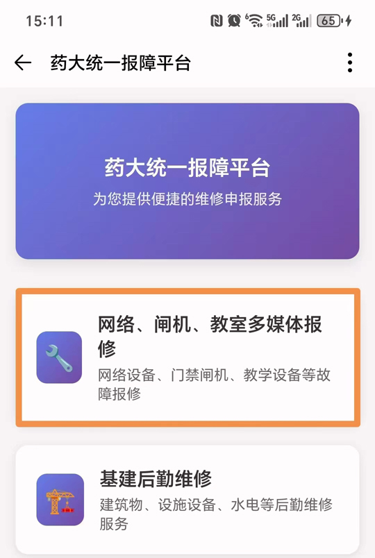 2.选择“网络、闸机、教师多媒体保修”。