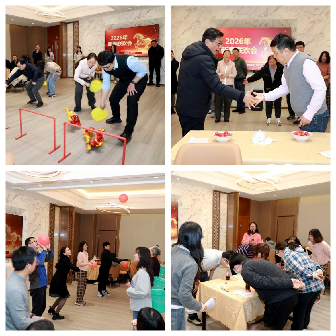 联欢会在支委联合朗诵《长征组歌》中拉开帷幕。铿锵有力的字句带领全场重温峥嵘岁月,点燃了现场热烈的氛围。随后,“贤马归位,马到成功”“齐心协力(圣女果接力)” 等趣味游戏轮番登场,各位教职工默契配合、奋勇争先,欢声笑语充盈全场,在轻松愉悦的互动中拉近了心与心的距离。